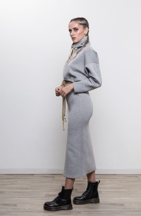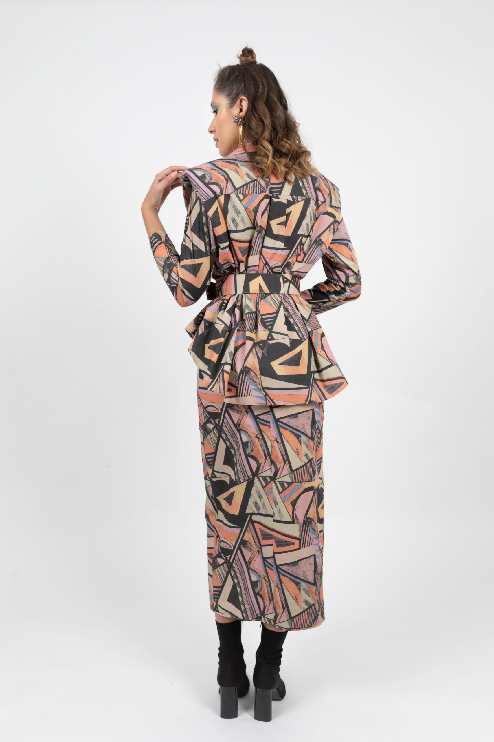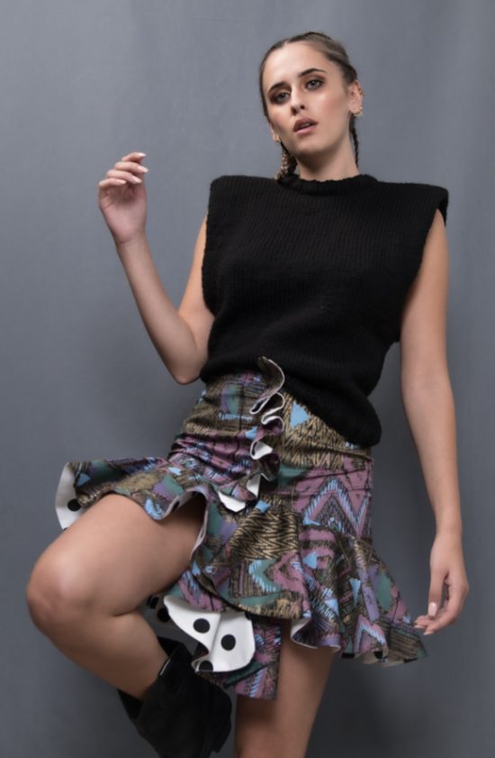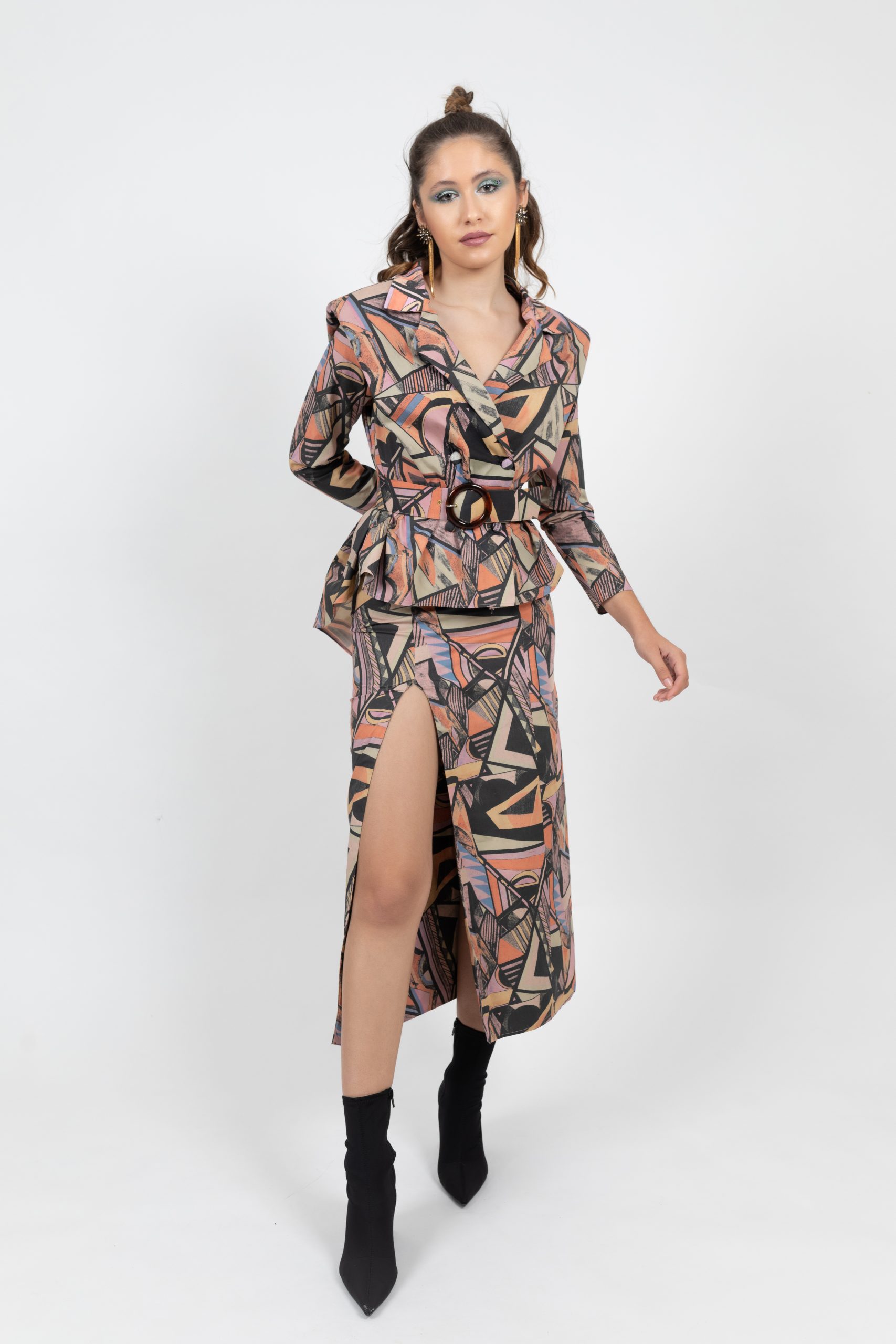 Descripción: Falda midi estampada con abertura, cintura alta.