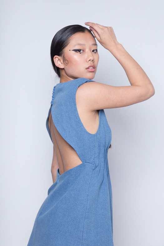 Descripción: Vestido mini con hombreras, jaretas y escote en la espalda.